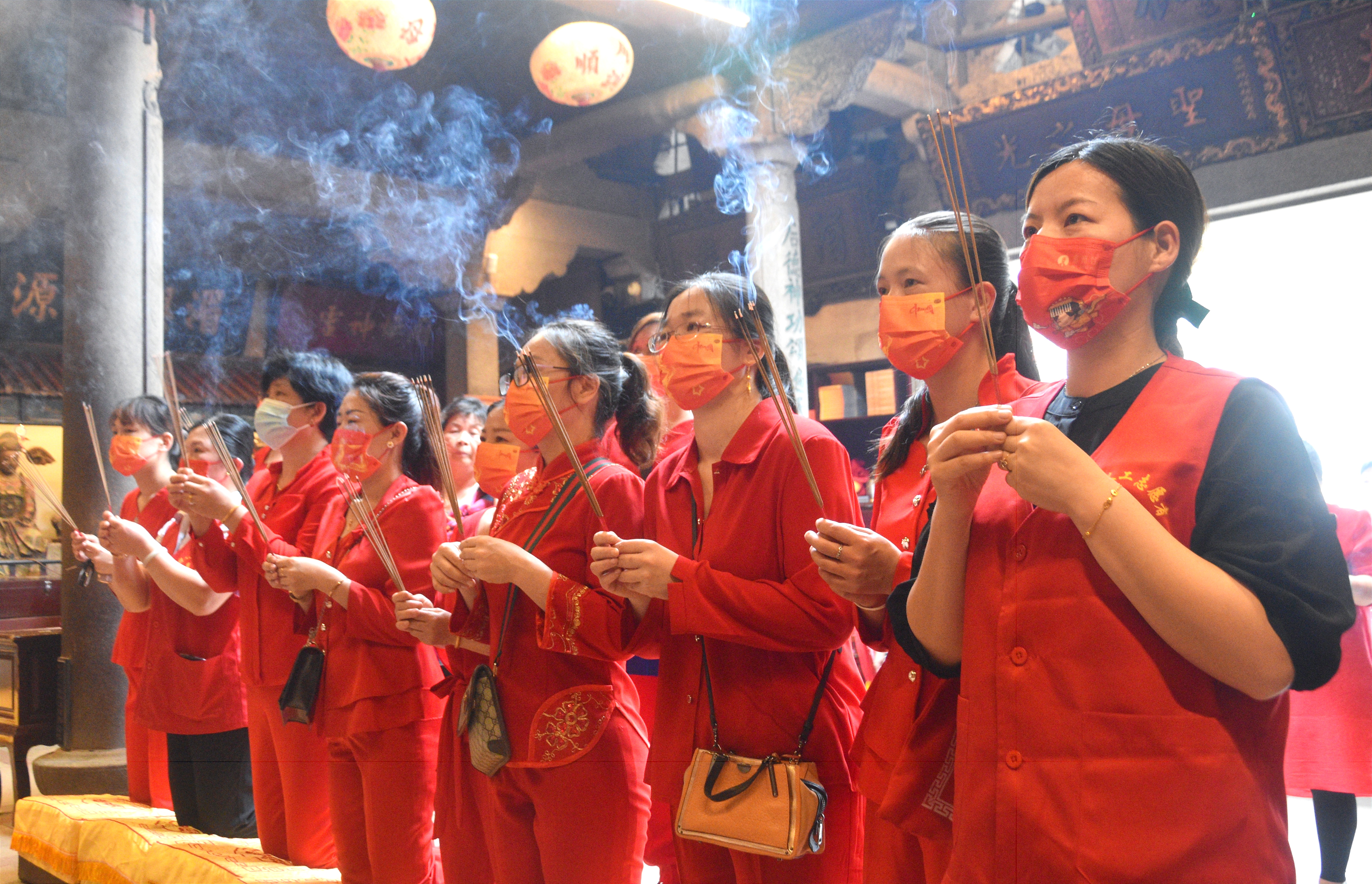 媽祖義工王蕎蓁是臺灣臺北人,自2018年首次到湄洲島朝圣后,她每年都會來湄洲媽祖祖廟拜媽祖、做義工,以實際行動踐行媽祖“立德、行善、大愛”精神,傳播媽祖文化。去年6月,王蕎蓁選擇定居湄洲島,并繼續(xù)以媽祖義工身份為來島朝圣觀光的香客游人提供志愿服務(wù)。“希望每一位考生都能以積極的心態(tài)備考,全力以赴,爭取考出好成績。”王蕎蓁為考生們獻上自己真摯的祝福。