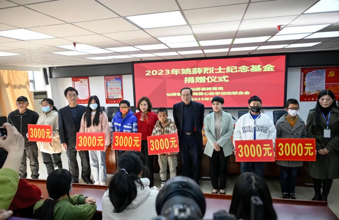 第二站是仙游。公公的籍貫寫的都是“福建省仙游縣”。8年來我們通過仙游縣教育局和“曾德梅愛心助學(xué)活動聯(lián)合會”的協(xié)助,每年發(fā)放“姚薛烈士助學(xué)金”給55名家境困難的孩子,每人3000元助學(xué)金。這次又可以親自來到現(xiàn)場頒發(fā),見到孩子們總是有著衷心的喜悅。來閩前夕收到“曾德梅愛心助學(xué)活動聯(lián)合會”鄭會長提供的孩子家境背景的報告,令我徹夜難眠:還有那么多有困難的人家啊!公公婆婆就義之后就成為孤兒的人望,決定捐出更多基金來資助家鄉(xiāng)的孤兒,于是在會上宣布除了每年的固定助學(xué)金額之外,再追加100萬元。我們總是說:捐款不難,最難的是要把善款放到需要的人手中,那才是繁復(fù)辛苦的工作。感謝“曾德梅愛心助學(xué)活動聯(lián)合會”和仙游縣教育局,不辭辛勞地做調(diào)查、家訪,選擇需要幫助的學(xué)生,年復(fù)一年地提供助學(xué)金名單,一分不差地發(fā)放到學(xué)生手中。