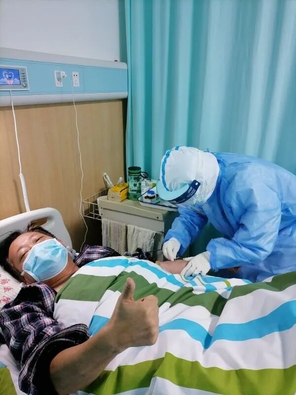 (醫(yī)療隊(duì)員送治愈患者出院)