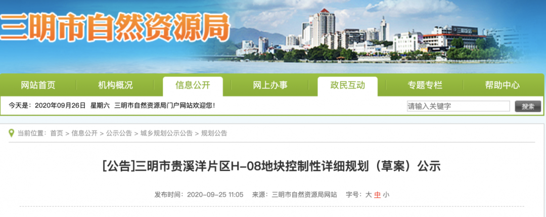三明市貴溪洋片區(qū)H-08地塊控制性詳細(xì)規(guī)劃(草案)公示