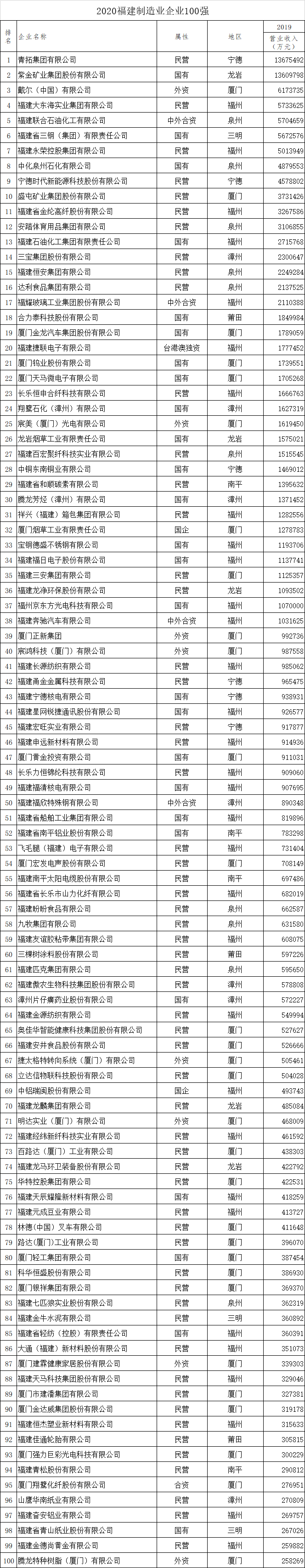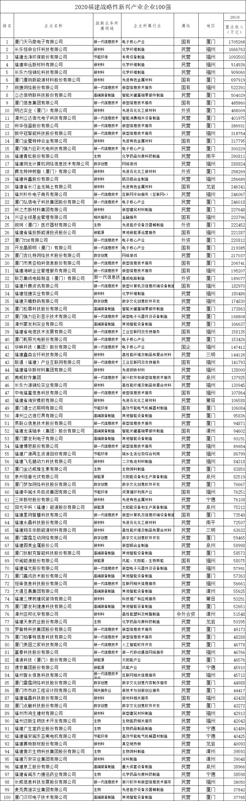 2020年福建戰(zhàn)略性新興業(yè)企業(yè)100強