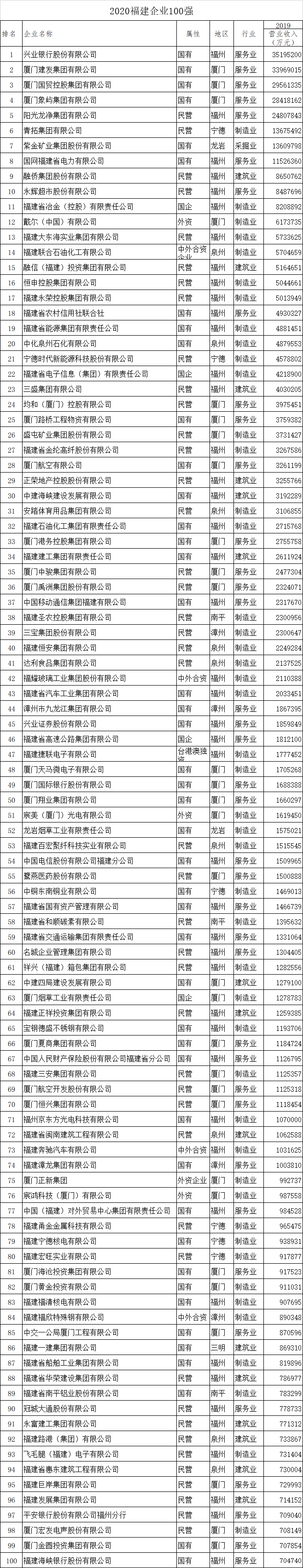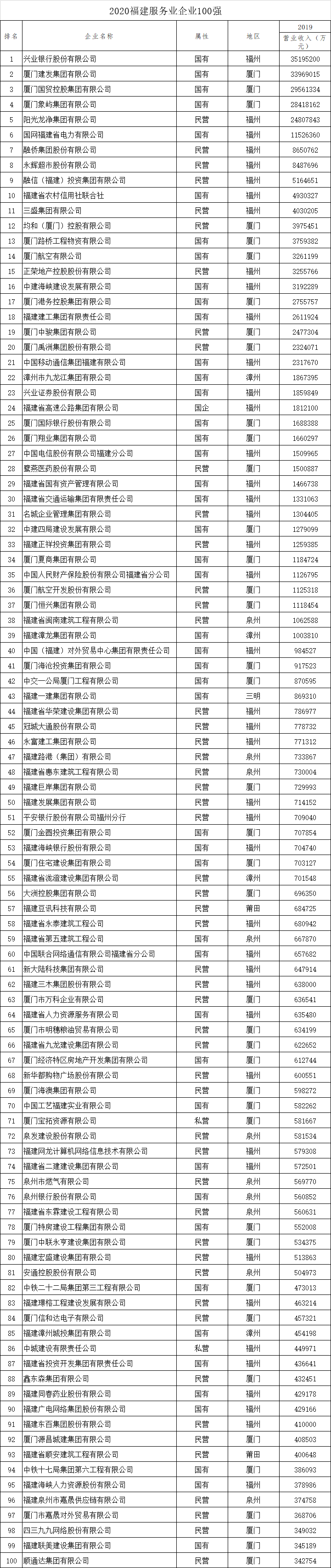 2020年福建服務(wù)業(yè)企業(yè)100強
