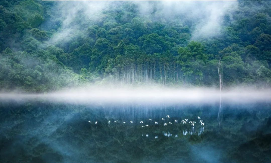 在將樂常口村,我們找到了一方浩淼的湖綠——湖光山色共一體,百鳥長天齊飛翔。