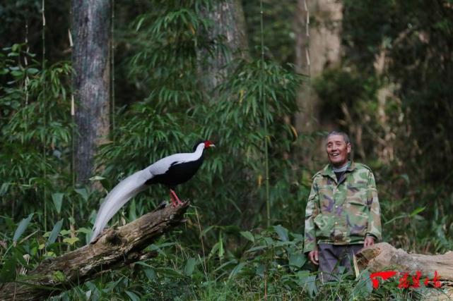 臺海網(wǎng)11月19日訊 據(jù)福建日報·新福建APP報道 11月18日7時許,在海拔880多米的明溪縣夏陽鄉(xiāng)紫云均峰山山腰的白鷴谷中,75歲的楊美林大爺像往常一樣,對著山谷“咕咕咕、咕咕咕”地呼喚幾聲,不一會兒,5只白鷴如約而至,時而在枯樹樁上覓食,時而在石頭間跳躍,時而展翅飛翔。在楊美林大爺?shù)暮魡韭曋校恢话掞w到了他的跟前,昂首闊步地登上一棵枯木。(來源:新福建 江月蘭/攝)