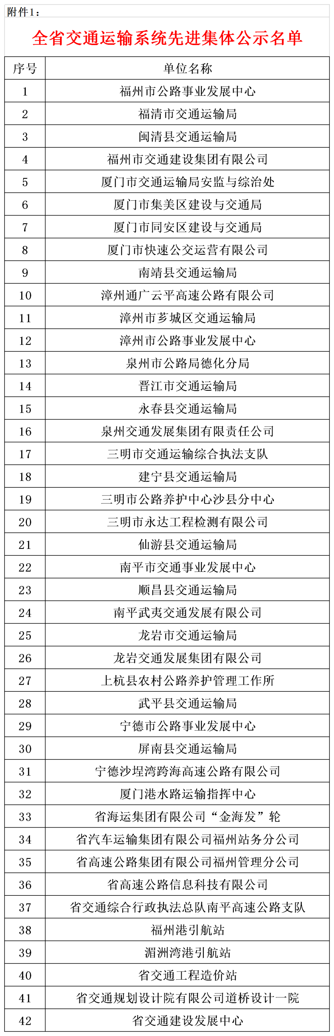 一、全省交通運輸系統(tǒng)先進集體(42個):