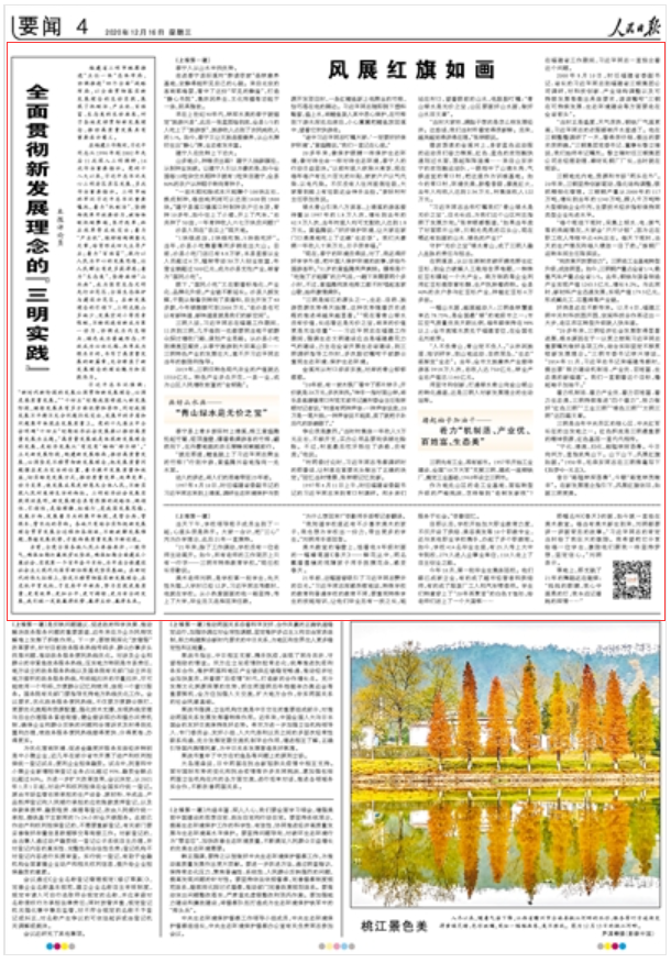 人民日?qǐng)?bào)16日推出專題內(nèi)容,在頭版重要位置刊登文章《風(fēng)展紅旗如畫——全面貫徹新發(fā)展理念的三明探索與實(shí)踐(上)》,同時(shí)還配發(fā)特寫和攝影專版。