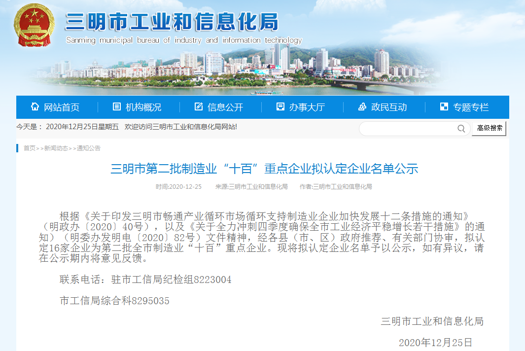 (來(lái)源:三明市工業(yè)和信息化局網(wǎng)站)