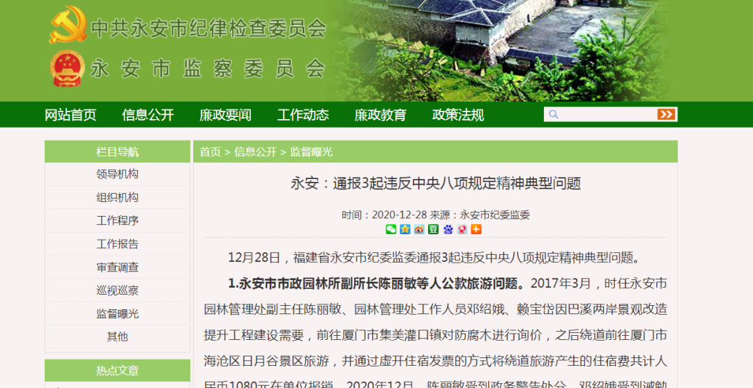 1、永安市市政園林所副所長陳麗敏等人公款旅游問題。