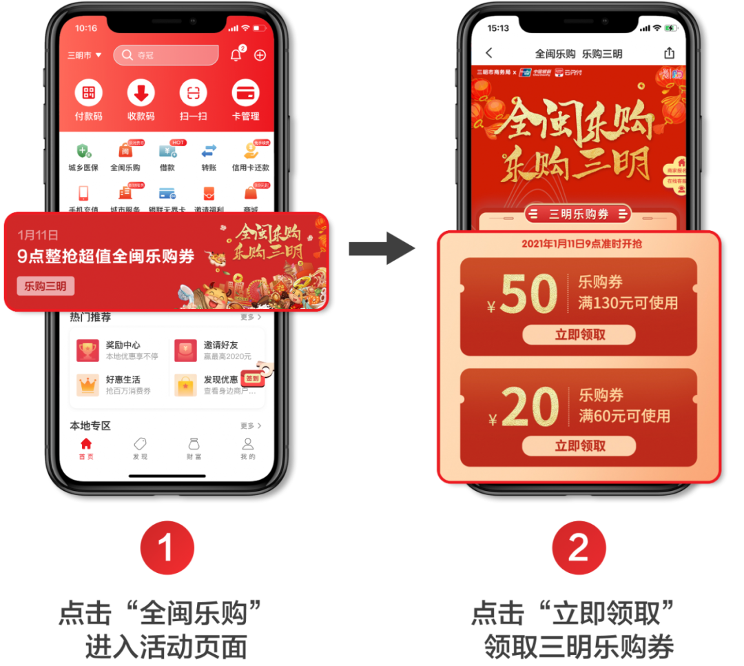 可領(lǐng)取2張“全閩樂購·樂購三明”消費券: