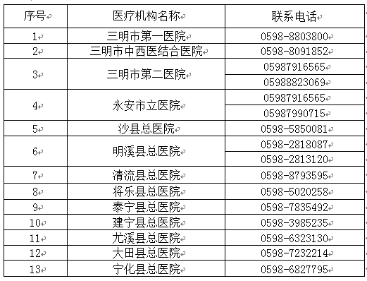 附:1.三明市設(shè)有發(fā)熱門(mén)診的醫(yī)療機(jī)構(gòu)名單