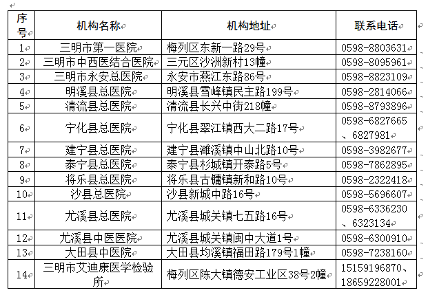 2. 三明市開(kāi)展新冠病毒核酸檢測(cè)機(jī)構(gòu)名單