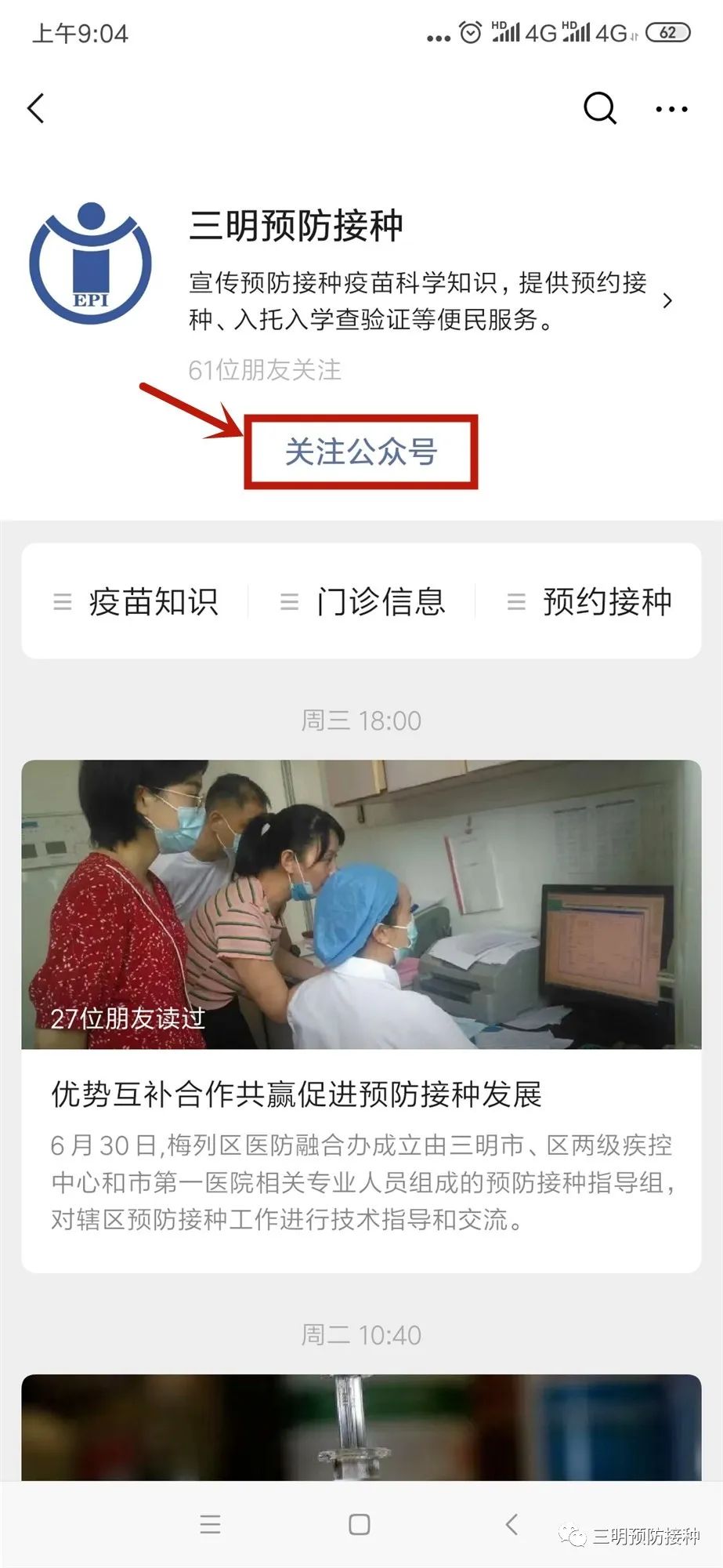 01 關(guān)注“三明預(yù)防接種”微信公眾號(hào)