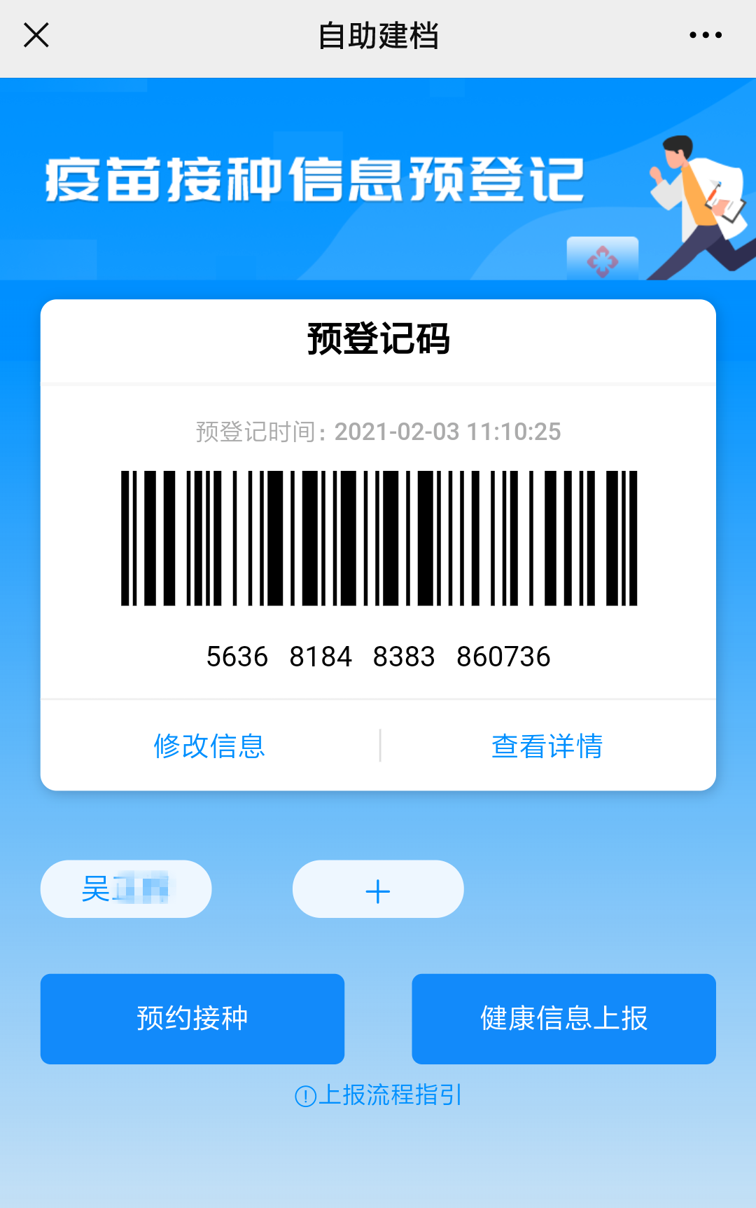 在預(yù)防接種門診前臺(tái)登記時(shí),請(qǐng)主動(dòng)出示“預(yù)登記碼”,感謝您的配合!