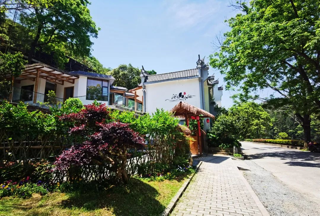 在百桂山莊,純樸自然的鄉(xiāng)村風(fēng)光和現(xiàn)代建筑、古樸的民宿建筑相映成趣。