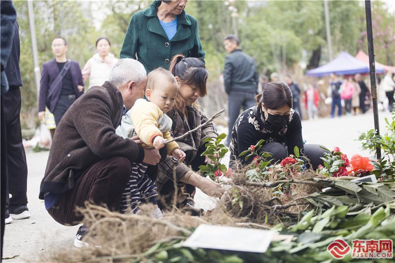 將樂備耕圩,老人帶著孩子一起選購苗木,感受春的氣息。