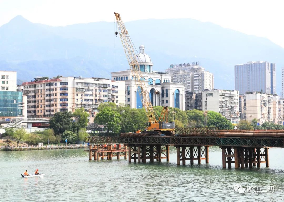 如意橋全長460米(含匝道),橋寬9.5米,東側設計有兩座引橋,一座與東新四路人行道相接,另一座與東新四路人行天橋相接,目前項目正處于架設鋼便橋階段,第一座鋼便橋已架設約65%。