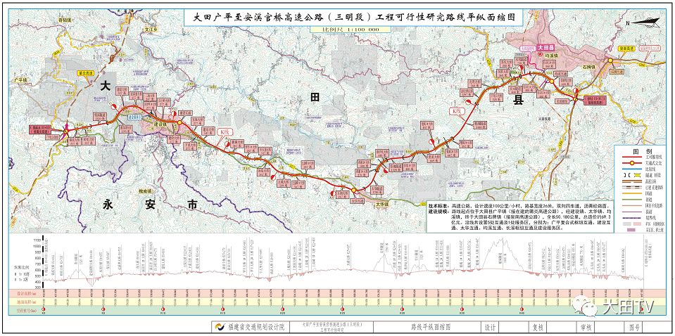 該路段設(shè)計速度為100公里/小時,雙向四車道,項目沿線途經(jīng):廣平、建設(shè)、太華、均溪。