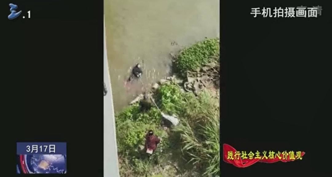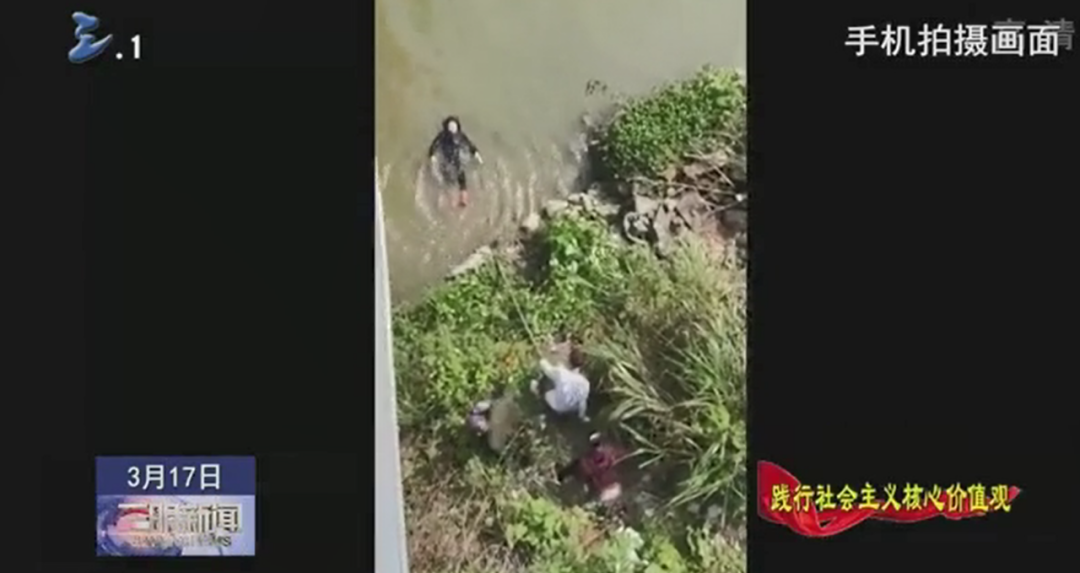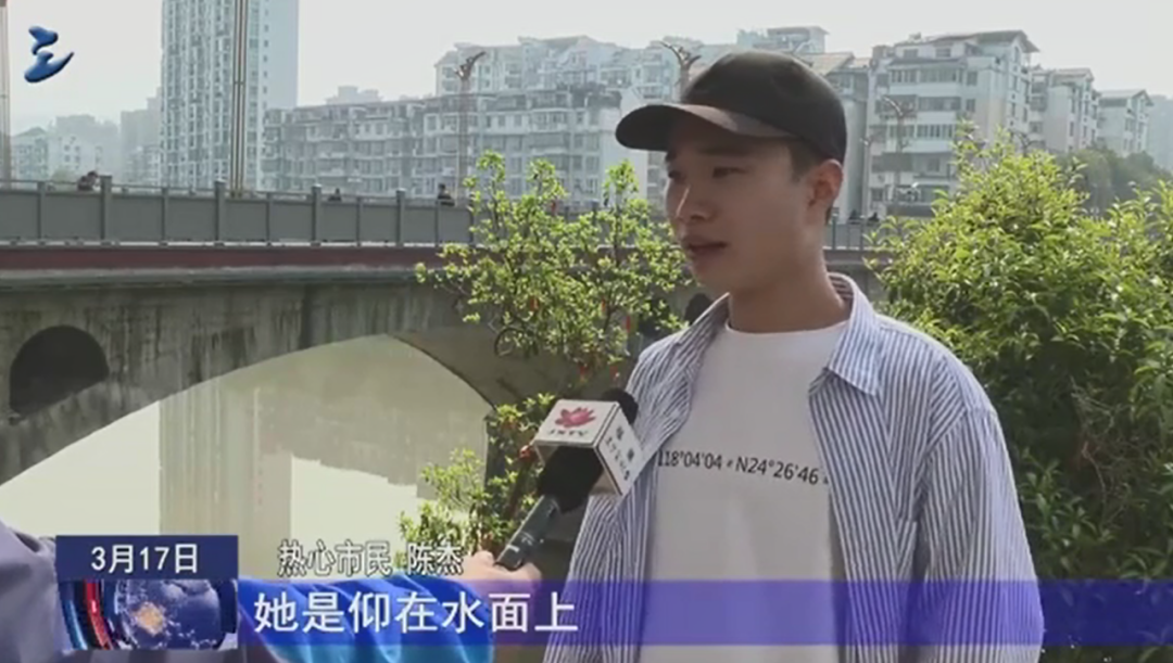 熱心市民 陳杰:聽見有人說有人落水,然后我就停車下來看了一下,看到一個(gè)老人家她是仰在水面上,當(dāng)時(shí)話情況比較危急,看到之后我就馬上就跑過來,跑過來途中是有個(gè)人遞一個(gè)竹竿給我,就下去河邊用那個(gè)竹竿把那個(gè)老人拉過來。