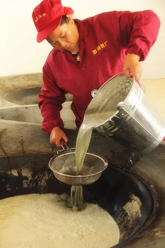 第一道是過濾漏網(wǎng),然后將汁里面的小蔗渣通過濾布再輕篩,還有第三道“瓢蔗屑”,第四道“騰鍋底”過濾工序,所以將樂的糖水格外純凈。