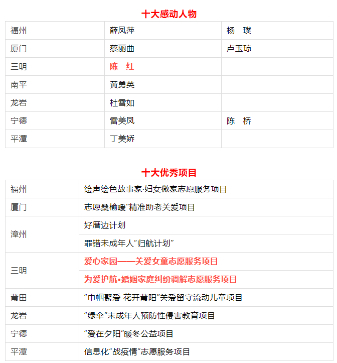 福建省新時(shí)代巾幗志愿服務(wù)工作征集展示結(jié)果揭曉名單