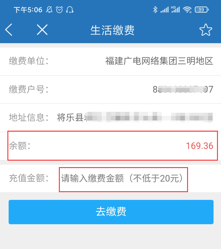 戶號正確即可查詢到當前賬戶余額,并可以直接充值(不低于20元)。