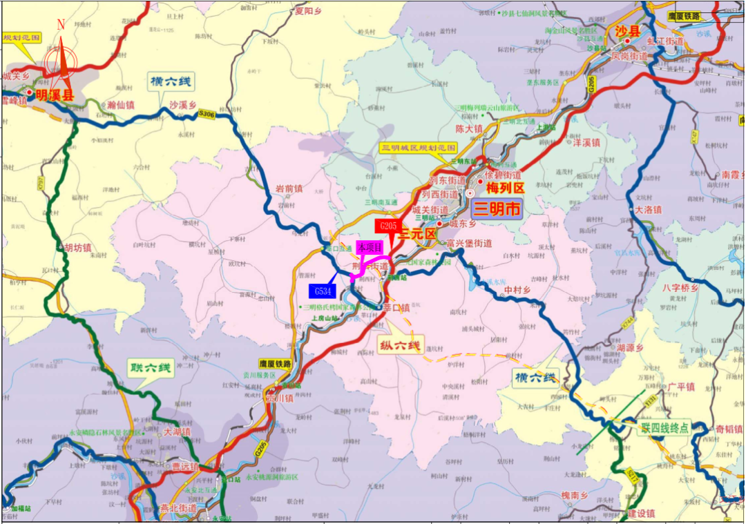 該項(xiàng)目采用設(shè)計(jì)施工總承包(EPC)模式建設(shè),建安費(fèi)4660萬(wàn)元,起于荊西街道官洋坑與國(guó)道G205線平交,連接莆炎高速三明西互通連接線,終于莘口鎮(zhèn)渡頭坪順接國(guó)道G534線,線路全長(zhǎng)1.52公里,按二級(jí)公路標(biāo)準(zhǔn)設(shè)計(jì),路基寬度12米,設(shè)計(jì)速度60公里/小時(shí)。