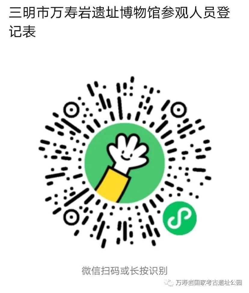 特別提示:如已申領(lǐng)八閩健康碼,可打開(kāi)閩政通APP/支付寶/微信,自行掃描萬(wàn)壽巖遺址博物館“張貼碼”并出示“登記成功”頁(yè)面。