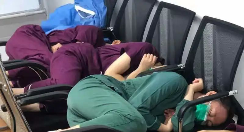 扛不住了或者一輪工作結(jié)束休息時(shí),她們就在椅子上小憩一會(huì)兒沒多久就又爬起來繼續(xù)戰(zhàn)斗。