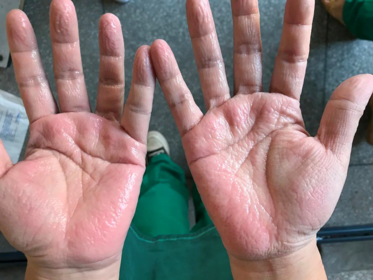 臉上深深的勒痕,濕透的工作服,發(fā)白起皺的雙手是每一位“大白”脫下“戰(zhàn)服”后的標(biāo)配。