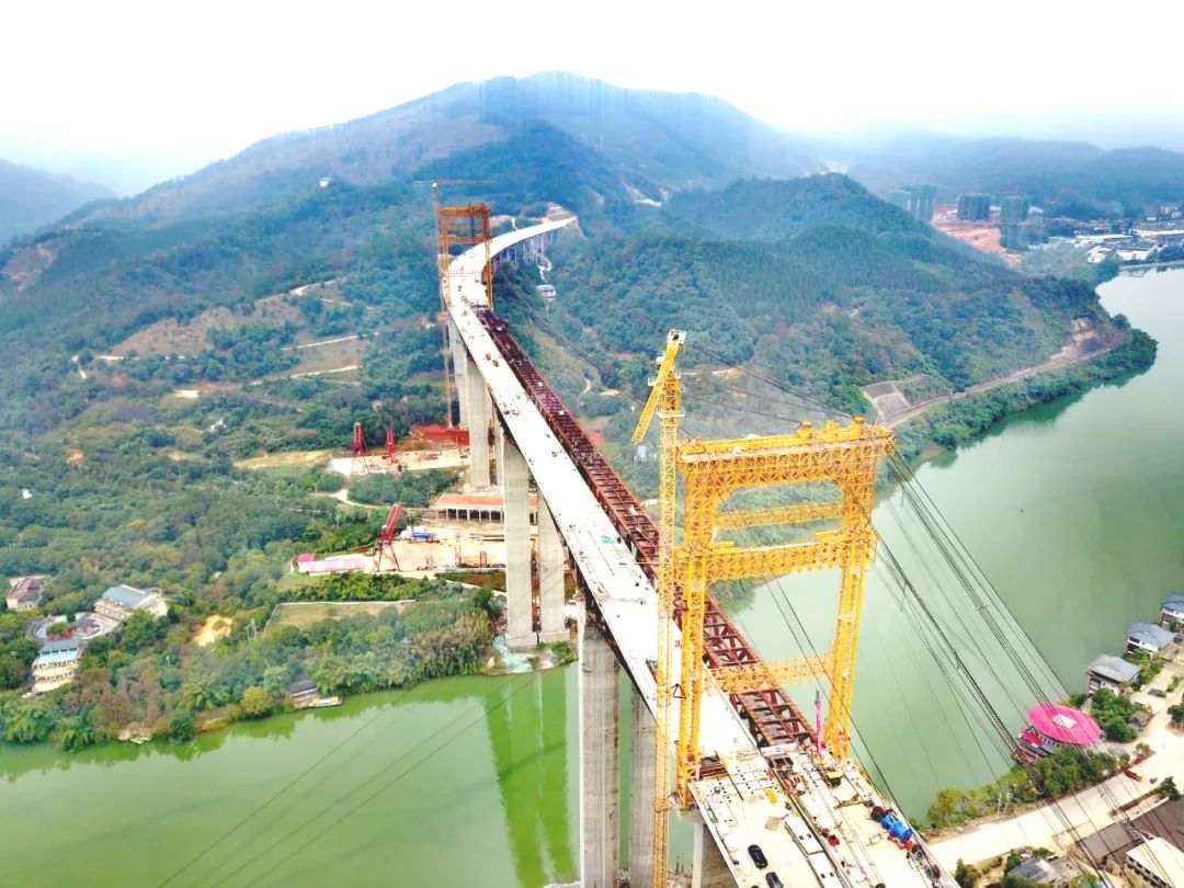 沙溪大橋?yàn)槟壳皣?guó)際上同類型橋梁最大跨徑大橋,位于三元區(qū)莘口鎮(zhèn),全長(zhǎng)1408米,寬33.5米,主橋墩高超110米,雙向六車道,設(shè)計(jì)時(shí)速100公里。大橋橫跨205國(guó)道、沙溪河、鷹廈鐵路及月亮灣景區(qū),主橋上部結(jié)構(gòu)主跨為鋼桁組合連續(xù)鋼構(gòu),是莆炎高速項(xiàng)目的關(guān)鍵控制性工程之一。
