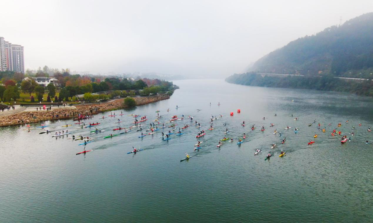 藍(lán)天白云下、青山綠水間,來自全國27省的近300名皮劃艇運動健兒在金溪揮灑比賽豪情、享受泛舟之樂,體驗金溪之美,共享深呼吸。
