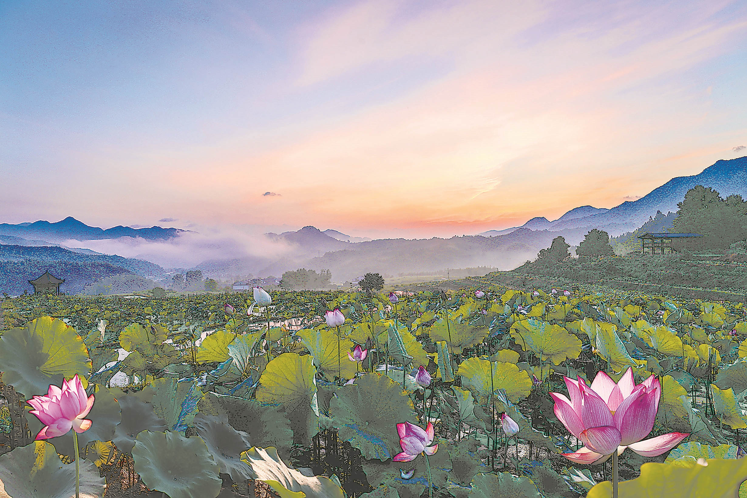 建寧縣濉溪鎮(zhèn)大源村坪上蓮海梯田,晨曦下的蓮花格外美麗。