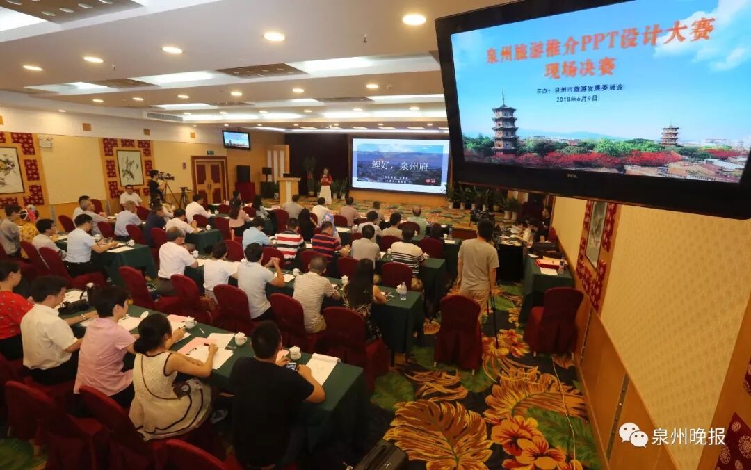 6月9日下午,“泉州旅游推介PPT設計大賽”現(xiàn)場決賽在泉州華僑大廈隆重舉行,10位選手輪番亮相,依次現(xiàn)場演示解說各自的PPT。