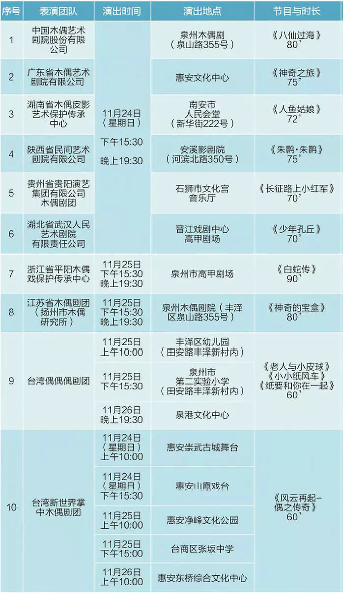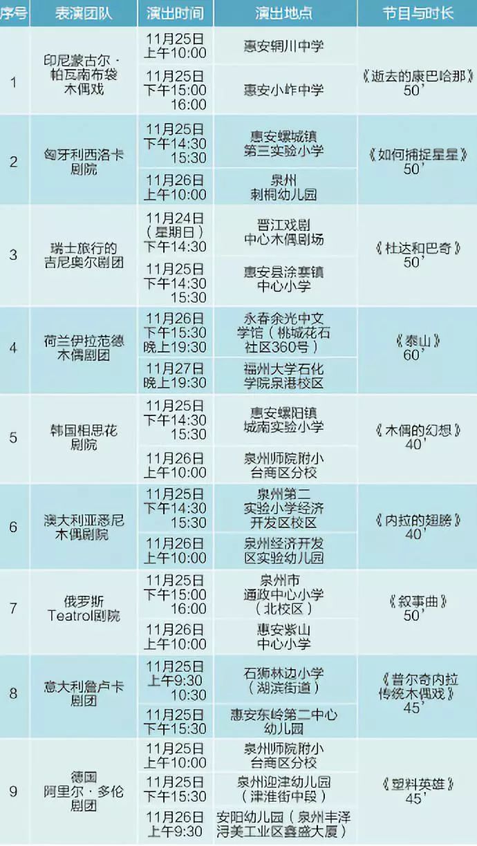 在接下來的四天時間,來自11個國家、地區(qū)的28個木偶藝術(shù)團(tuán)隊(duì)的藝術(shù)家們,將深入社區(qū)、農(nóng)村、校園、廣場、劇場,帶來70余場的精彩演出,走進(jìn)尋常百姓,為市民大眾送上一道道“好看、好聽、好玩”精美絕倫的藝術(shù)盛宴。