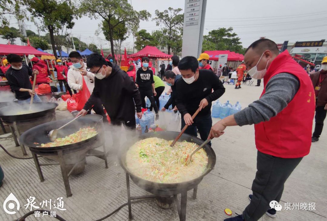 記者看到,現(xiàn)場還有志愿者支起鍋灶,為救援人員煮起熱騰騰的飯菜,還有志愿者在一旁迅速地分好餐食,以便讓辛勞的救援人員能第一時間補充體力。