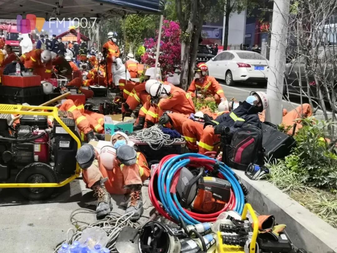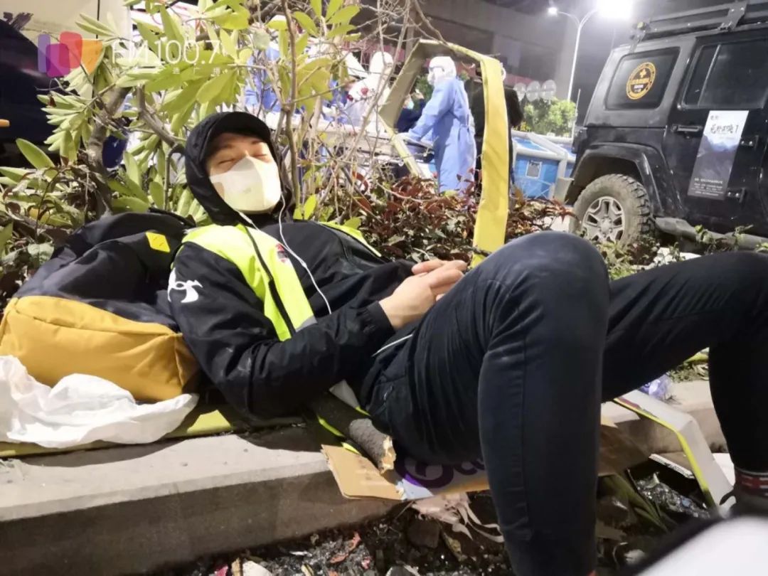 消防員奮戰(zhàn)一夜,輪休時(shí)席地而睡