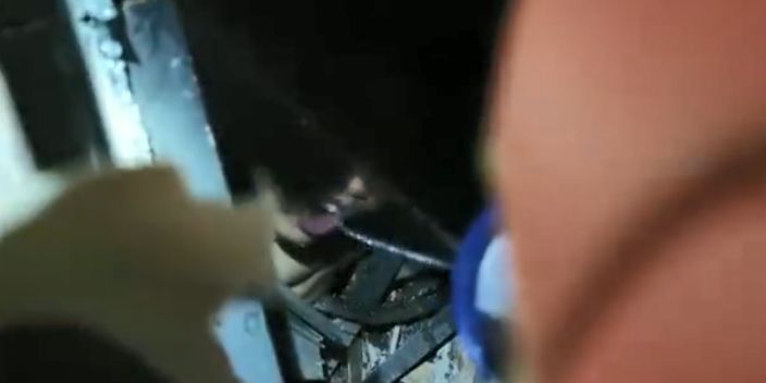 救援現(xiàn)場(chǎng),一被困男子獲救時(shí),指著妻兒的方向,反復(fù)強(qiáng)調(diào)他們的位置……下午兩點(diǎn),該男子的兒子被救出!