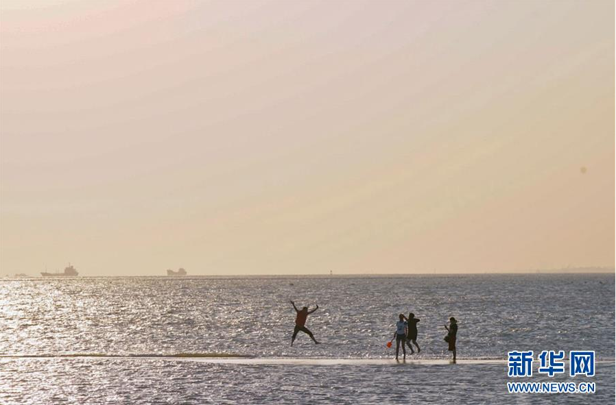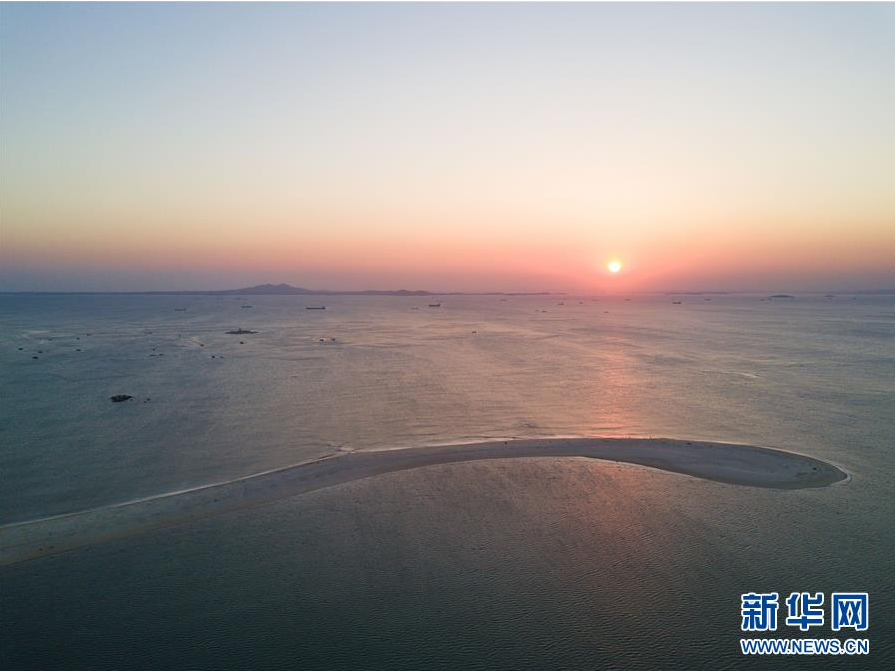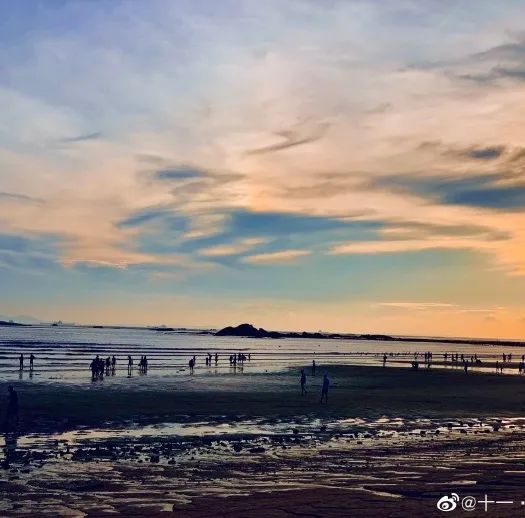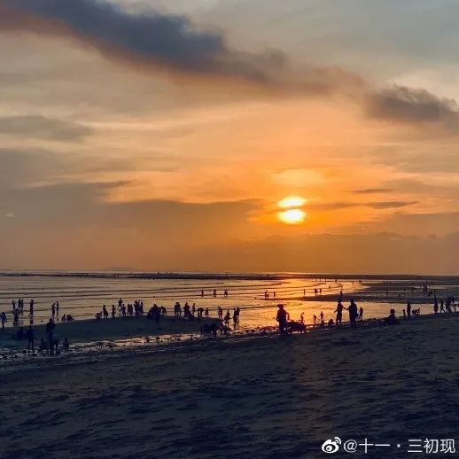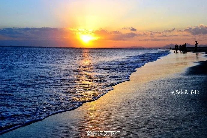 沙堤最美的,莫過于絕美的日落。站在沙堤岸邊,海面上籠起金色的寂靜,天邊牛乳般的潔白的云朵,也被染上晚霞的彩衣,美得不可方物。