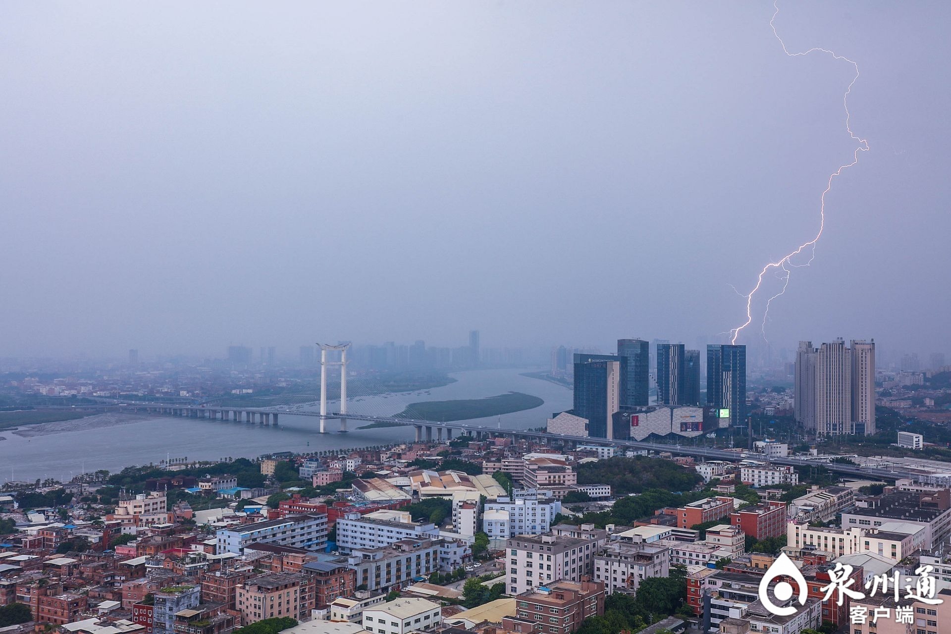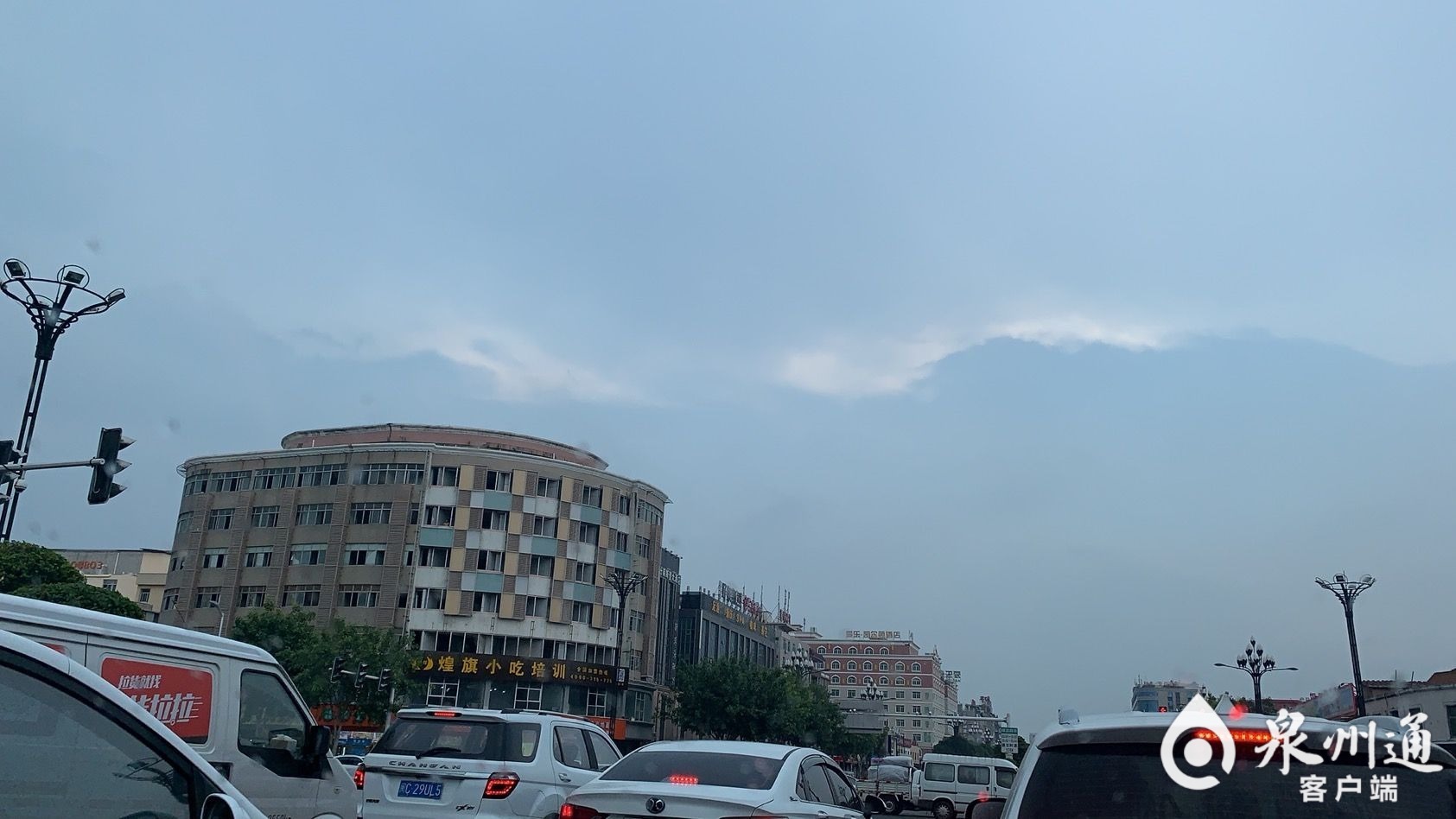 今日(2日)午后,泉州市區(qū)陣陣?yán)醉戇^后,一場大雨突如其來。