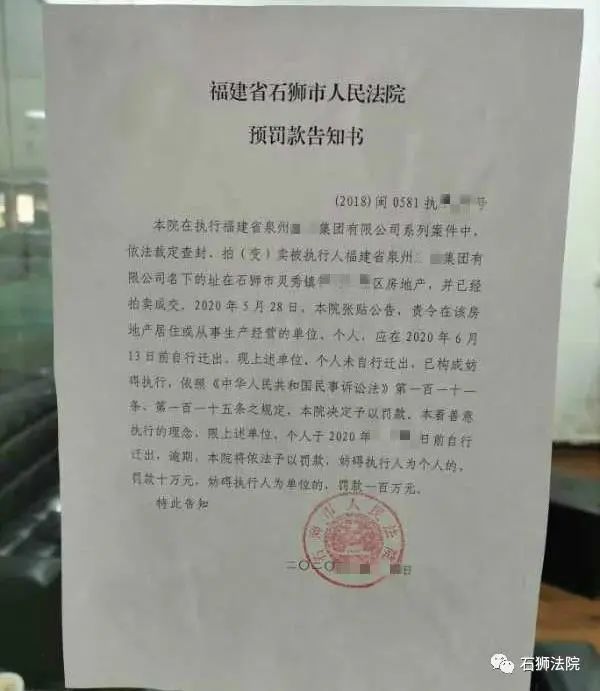 石獅法院發(fā)出首份“預(yù)罰款”告知書