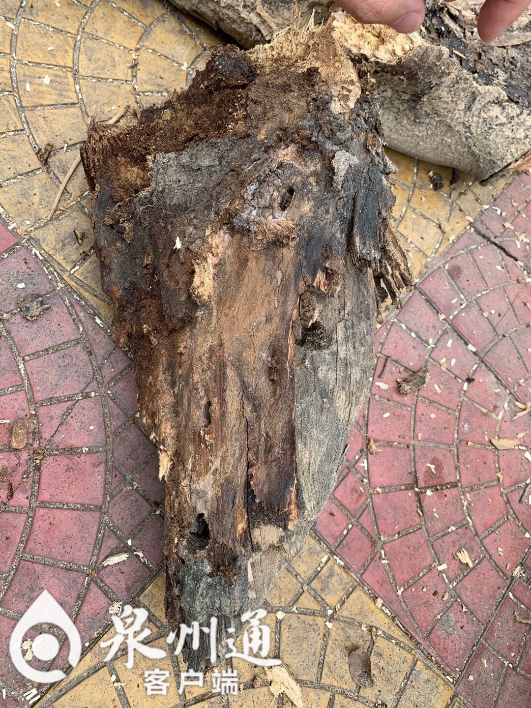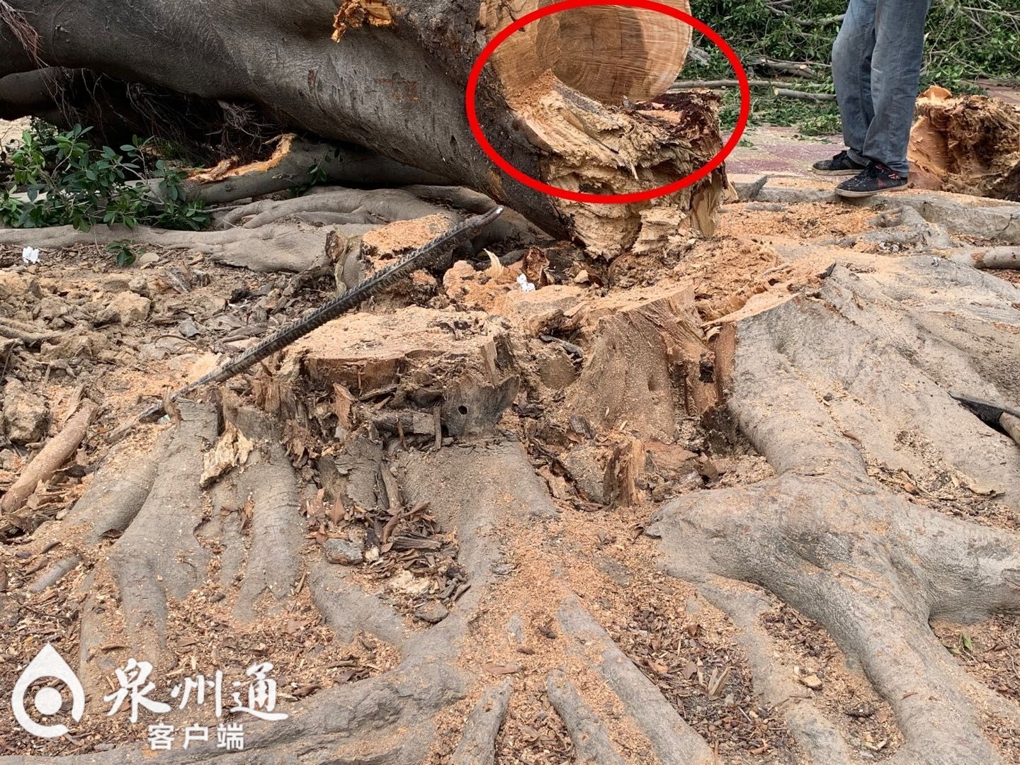 當天事發(fā)后,區(qū)相關部門、街道、社區(qū)等單位趕往現場勘查處理,已指派專業(yè)人員到現場進行清理。據了解,該榕樹是1997年左右小區(qū)公園建成前后種植的,距今已有20多年,該榕樹并非古樹名木,現場有發(fā)現蛀干蟲的孔洞,但主要倒伏原因還是榕樹感染了褐根病。