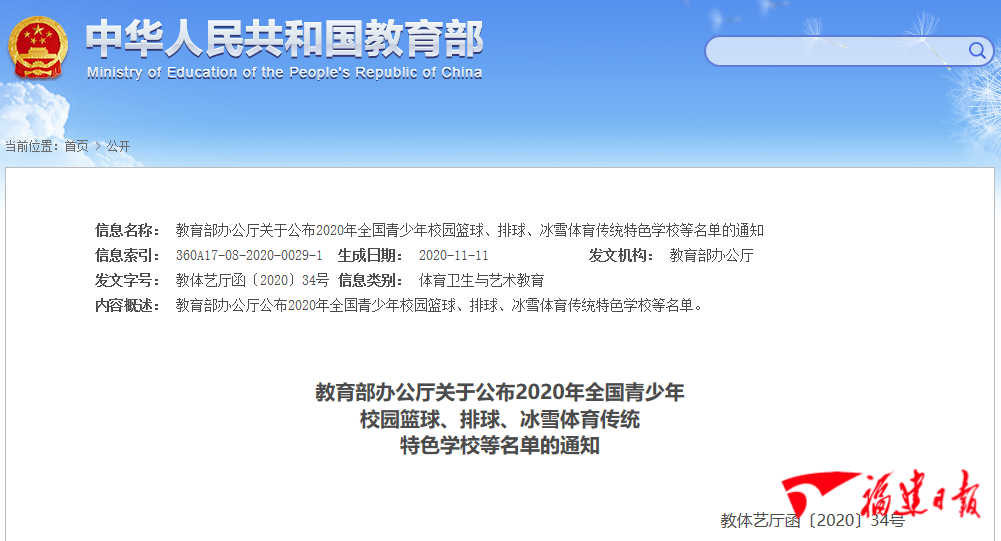 臺(tái)海網(wǎng)11月23日訊 據(jù)泉州網(wǎng)報(bào)道 近日,晉江8所中小學(xué)入選2020年全國(guó)青少年校園籃球、排球、冰雪體育傳統(tǒng)特色學(xué)校。