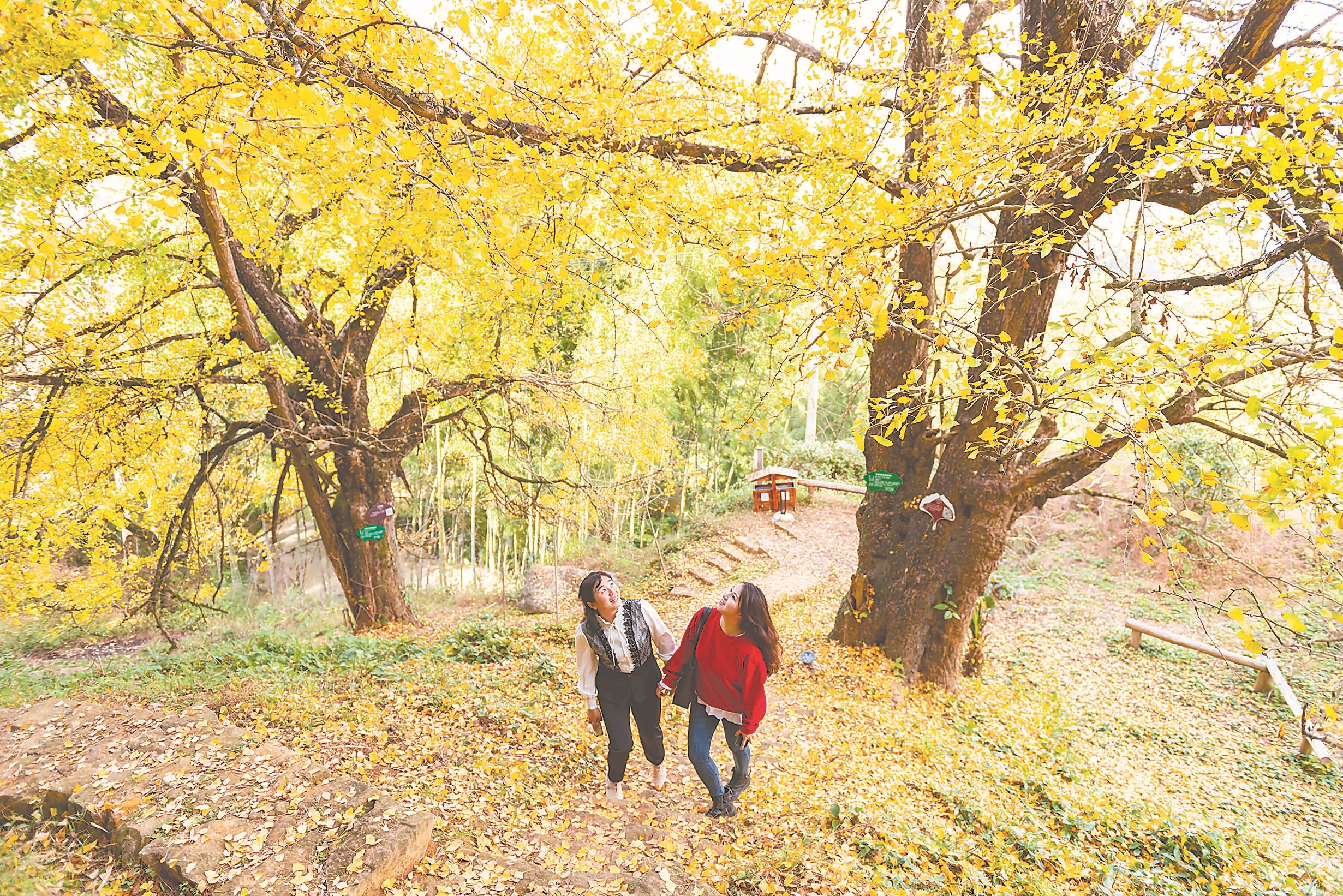 在德化縣楊梅鄉(xiāng)丁榮自然村,金黃的銀杏與閩南特色的古民居,構(gòu)成一道純樸的鄉(xiāng)野風(fēng)情。每年深秋初冬時節(jié),人們慕名而來,讓這個“銀杏小鎮(zhèn)”熱鬧了起來。(來源:新福建 許華森 攝影報道)