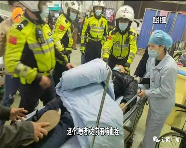 鯉城交警大隊(duì)鐵騎隊(duì)隊(duì)員 汪建喜:車門打開的時候患者已經(jīng)失去知覺了,已經(jīng)昏迷狀態(tài),然后人比較重、比較高,我們?nèi)膫€同事把他扶上擔(dān)架,患者的家屬跟醫(yī)生這樣介紹,這個患者之前有腦血栓。