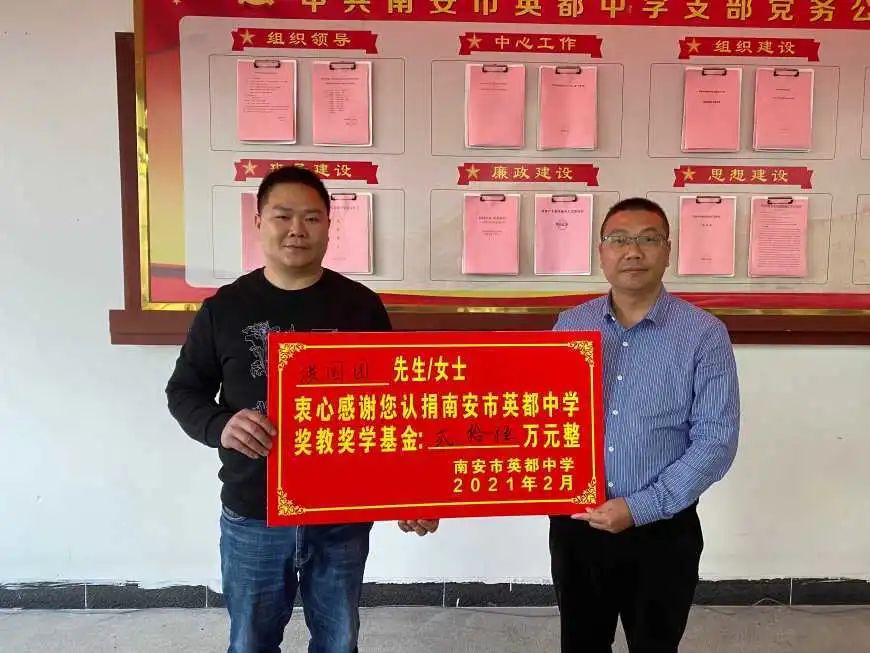 座談會上,熱心校友鄉(xiāng)賢倡議成立英都中學獎教獎學基金會?,F(xiàn)場,洪國團、洪曉輝、洪文華、洪金能、洪志懷、施歷增、洪帥龍等校友每人認捐25萬元作為獎教獎學基金會啟動資金。