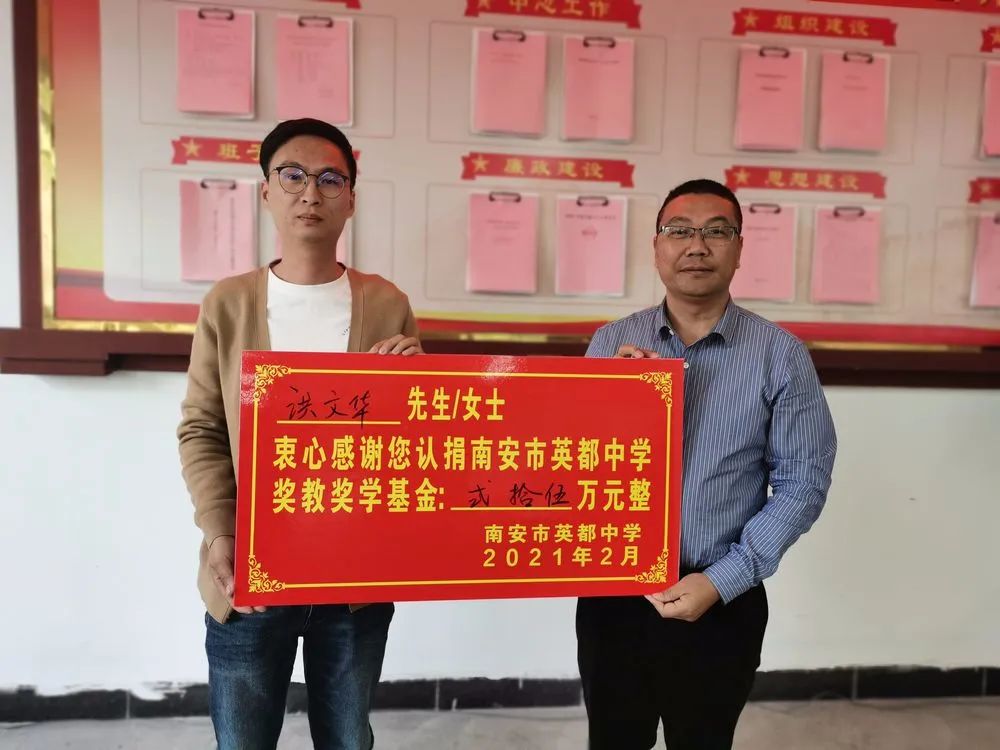 值得一提的是,一位匿名愛心人士通過英都中學校友會找到洪文尖校長,認捐獎教獎學基金250萬元。