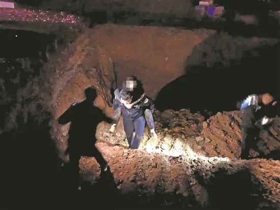 背起跌落3米深坑的女子