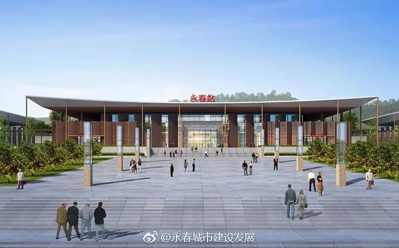 興泉鐵路永春站為線側(cè)下式中型站房,站房建筑面積6916平方米,車場設(shè)計規(guī)模為2臺4線,設(shè)立站臺兩座。站房設(shè)計吸收了永春本地元素和傳統(tǒng)建筑元素,將閩南風格和現(xiàn)代風格有機融合,建成以后有望成為永春又一地標建筑。