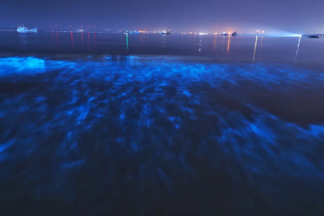 暗夜中,綿延的海岸邊泛著熒光藍(lán)這美輪美奐的奇觀就出現(xiàn)在惠安凈峰惠女灣海面上簡直美炸了。
