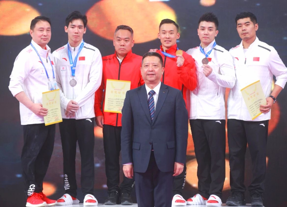 衛(wèi)冕冠軍廣東選手紀(jì)練深在男子單杠決賽與林超攀總分同為14.333分。最終根據(jù)本次賽事競賽規(guī)程,完成分最高者名次在前,因此紀(jì)練深再次贏得冠軍,林超攀再次奪得亞軍,江蘇隊(duì)孫煒以0.033分之差獲得季軍。